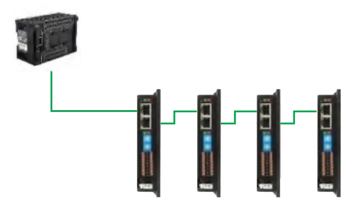 Compared with the pulse type, the fieldbus type is not only much easier in wiring, but also relatively simple to write the control program. Moreover, it can also monitor the running state of the motor and change the motor current and micro-stepping at any time, and simple control of acceleration and deceleration, analogue synchronous command, offline control, etc.